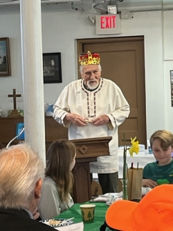Saint Urho's Tay (as it is pronounced by our Finnish-English members) is an especially important day. After all we must make sure all the grasshoppers (crasshoppers) leave those crapes (grapes) alone. So, ve get effery one togeter and ve celebrate da end of the pests. So, yes that is how we do it in our little town of Finns at our local Zion Lutheran Church hall on Sunday in March. We bring together some folks to reenact the way St. Urho and of course his poy (boy) and his wife (the Grape Princess) made sure that the grasshoppers got out of town and didn't hurt the grapes. It's a play on the American's celebration of St. Patrick's Day and it's a day of great fun.